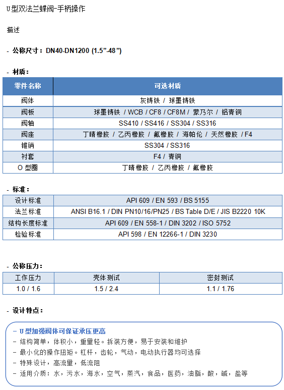 手柄式U型法兰蝶阀